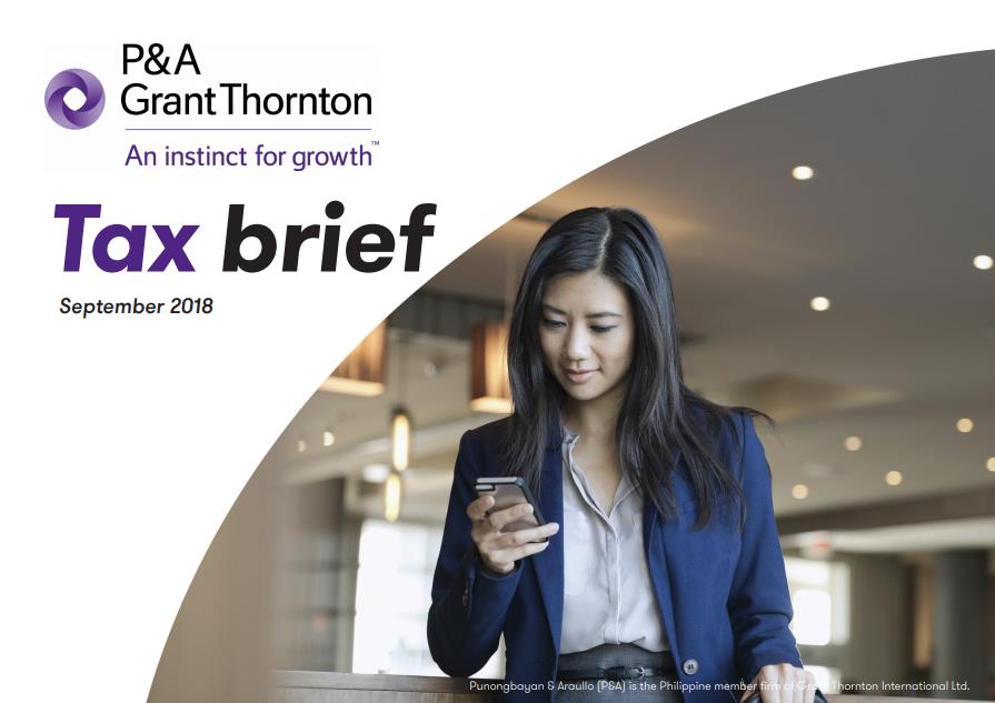 Click on the attachment to read the September 2018 issue of the Tax brief: a monthly publication about developments in Philippine taxation.