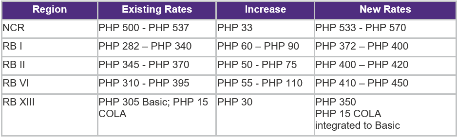 Below shows the list of Wage Orders that had been affirmed by the NWPC last May 17-18, 2022: