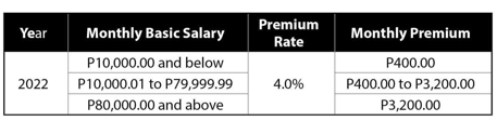 In accordance with PhilHealth Circular No. 2020-0005 on the "Premium Contribution Schedule in the National Health Insurance Program (Revision 1)," all Direct Contributors are hereby advised that the premium rate for CY 2022 is 4.0%, with an income floor of P10,000 and income ceiling of P80,000 effective January 2022. Please see details below: