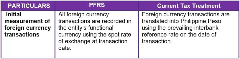 1. For taxation purposes, only the realized gain or loss from foreign exchange transaction will be subject to income tax. Unrealized gains or losses on forex fluctuations recognized in connection with the periodic remeasurement of assets and liabilities denominated in foreign currency to functional currency are not considered as income/loss for purposes of computing taxable income.