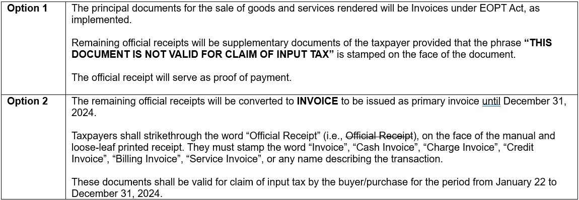 3. Taxpayers shall obtain newly printed invoices with an ATP before fully consuming the converted ORs or before Decembre 31, 2024, whichever comes first.