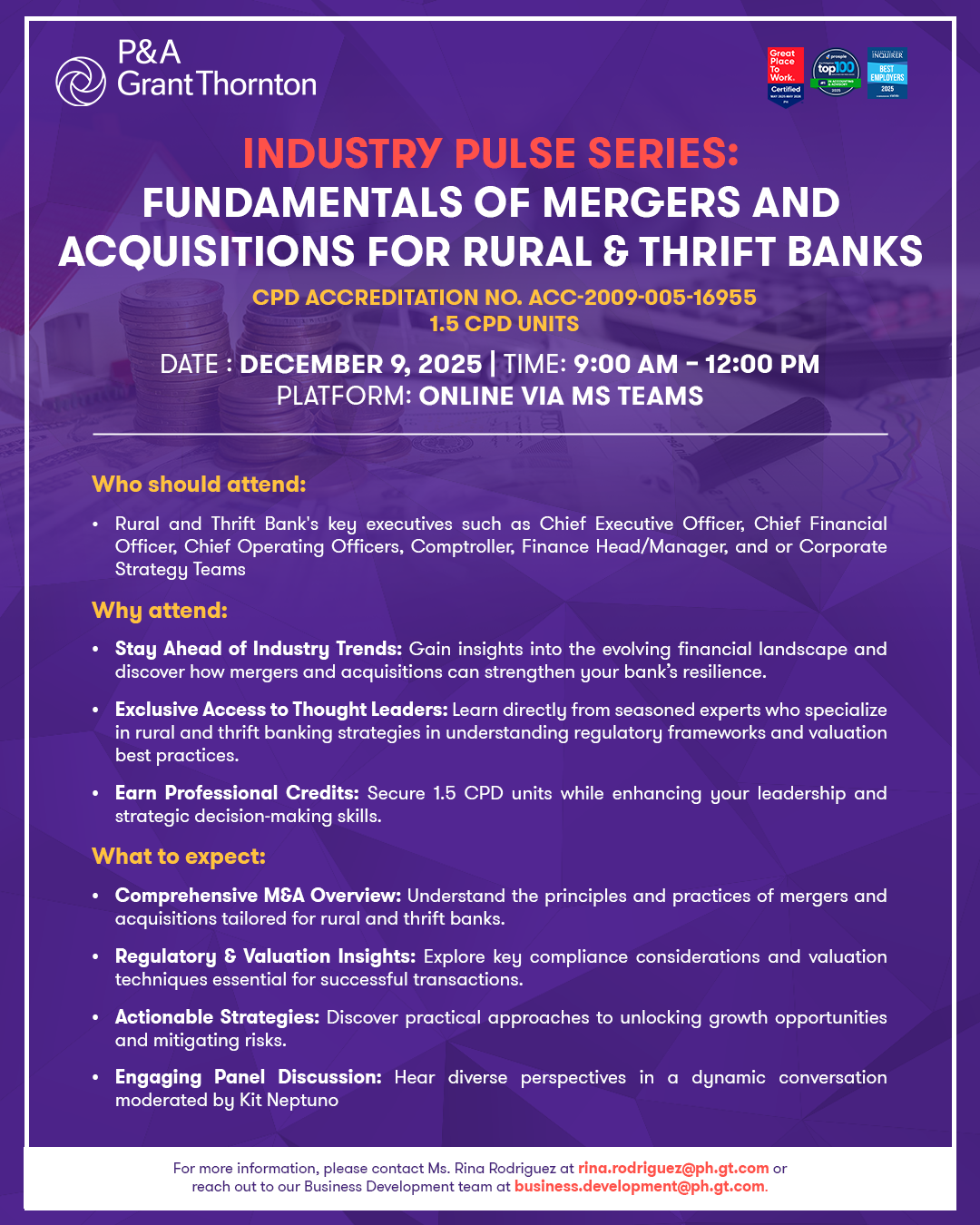For inquiries, other inquiries about the event or our services, feel free to contact us at business.development@ph.gt.com or reach out to Reina Pacampara at reina.pacampara@ph.gt.com