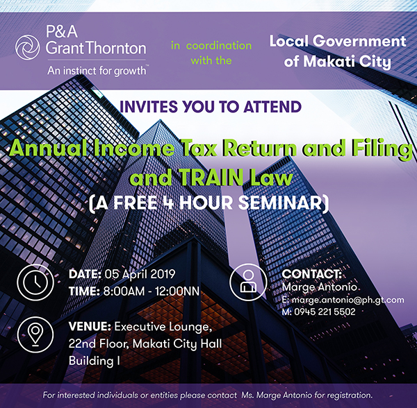• Executive Lounge, 22nd Floor, Makati City Hall Building I