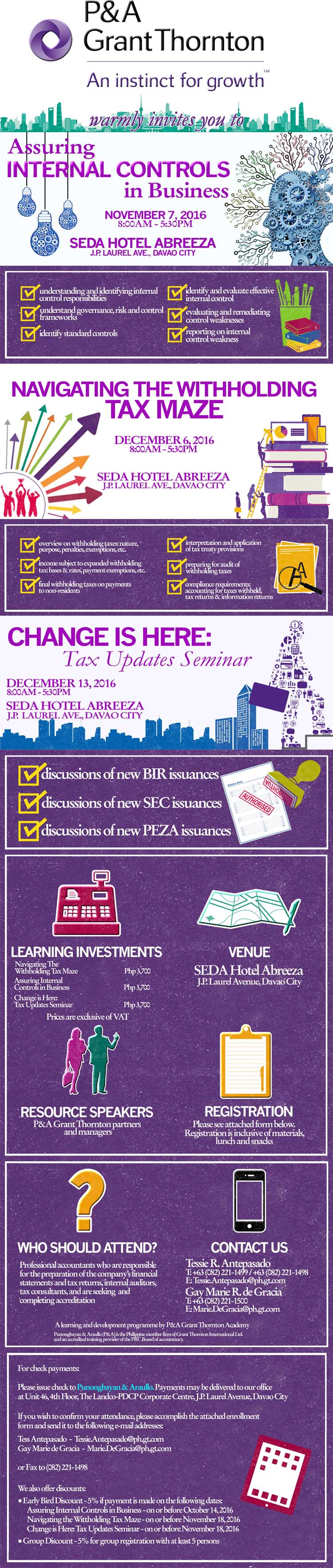 We offer seminars and trainings on tax-related developments and special issues of interest to taxpayers.