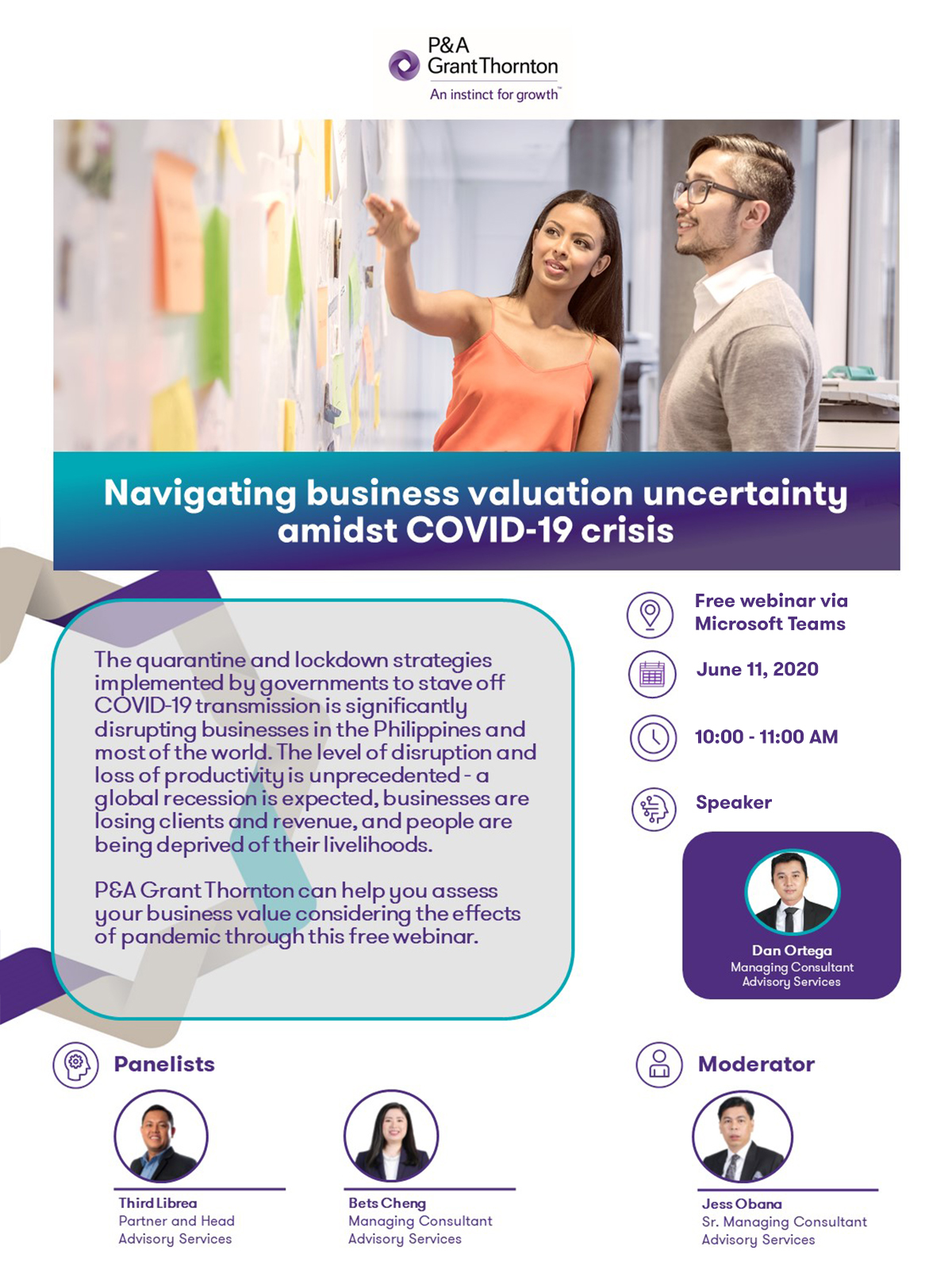 P&A Grant Thornton can help you assess your business value considering the effects of pandemic through this free webinar.