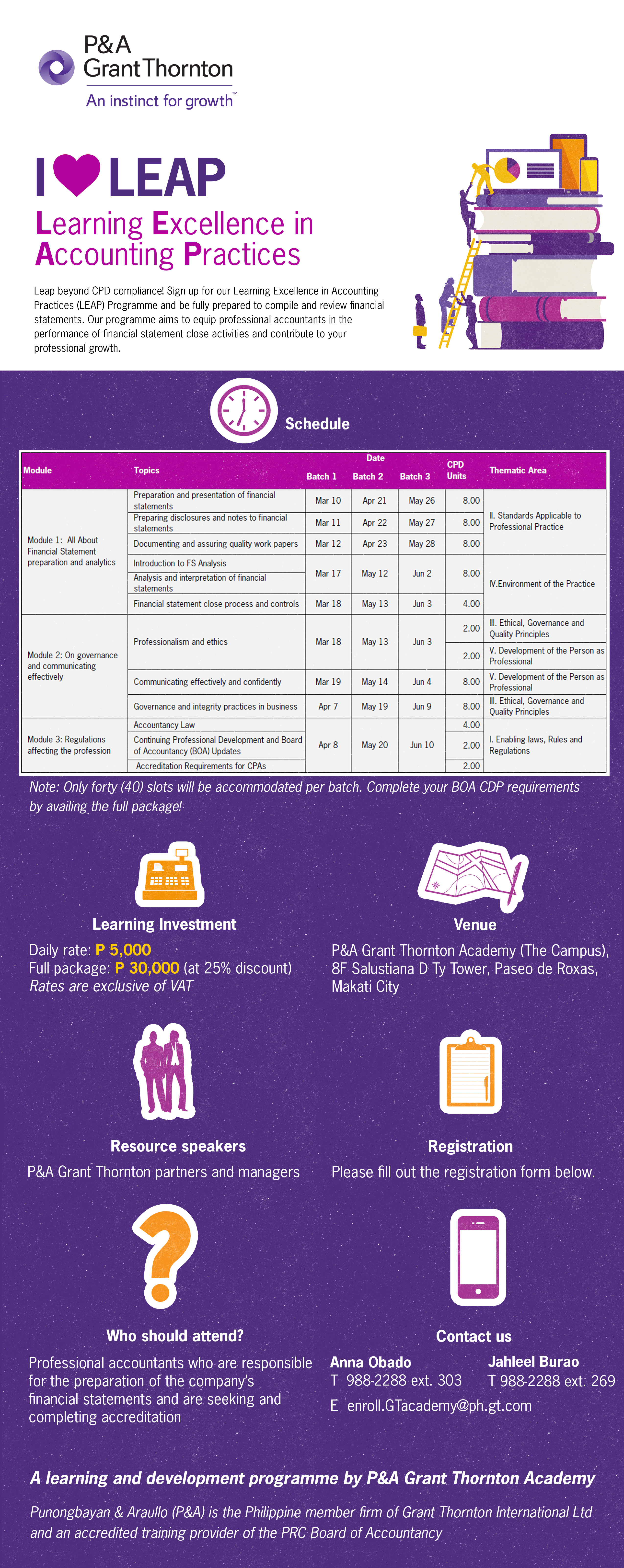 - P&A Grant Thornton Academy (The Campus), 8F Salustiana D Ty Tower, Paseo De Roxas, Makati City
