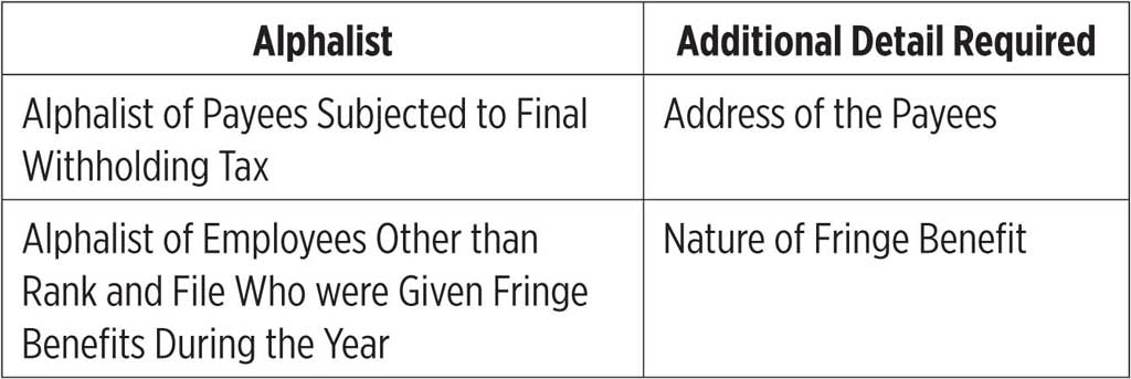 Further, the same RMC provides a revised Alphalist of Payees attached to BIR Form No. 1604-F to include the following details of the transaction:
