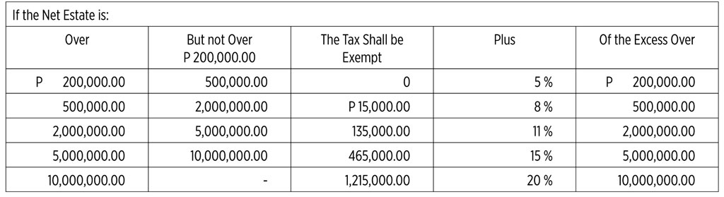 Recently, the estate tax came back to the consciousness of the public as the current administration is pushing for the amendment of the rates of the estate tax and the grant of amnesty to delinquent estates.