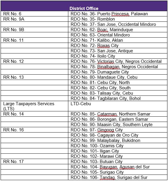 The extension is intended to provide ample time for affected taxpayers and BIR personnel in the following offices to comply with the statutory tax deadlines: