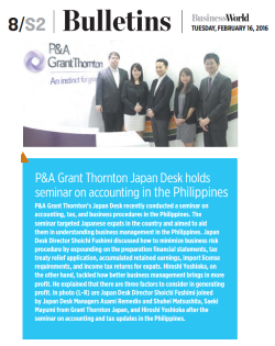 P&A Grant Thornton’s Japan Desk recently conducted a seminar on accounting, tax, and business procedures in the Philippines. The seminar targeted Japanese expats in the country and aimed to aid them in understanding business management in the Philippines. Japan Desk Director Shoichi Fushimi discussed how to minimize business risk procedure by expounding on the preparation financial statements, tax treaty relief application, accumulated retained earnings, import license requirements, and income tax returns for expats. Hiroshi Yoshioka, on the other hand, tackled how better business management brings in more profit. He explained that there are three factors to consider in generating profit.