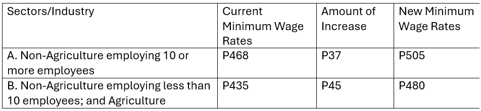 Upon effectivity on November 19, 2025 of this Wage Order, the minimum wage workers in the private sector within the region shall receive the following daily wage increase:
