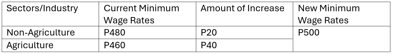 Upon effectivity on November 05, 2025 of this Wage Order, minimum wage earners in the private sector in the Region shall receive a P20.00- P40.00 increase per day;