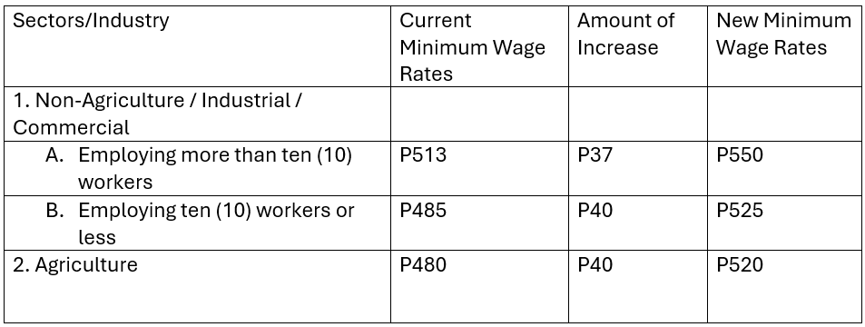 Upon effectivity on November 19, 2025 of this Wage Order, the minimum wage workers in the private sector within the region shall receive P37.00-P40.00 increase per day