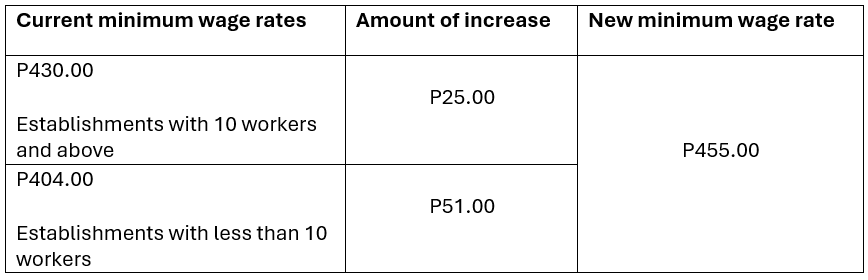 Upon effectivity of this Wage Order, minimum wage earners in the private sector within the Region shall receive the following daily minimum wage increase: