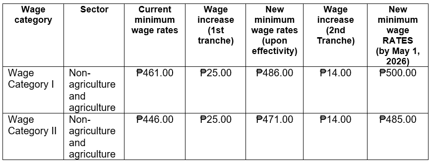 Second tranche: Additional ₱14.00 per day starting on May 1, 2026