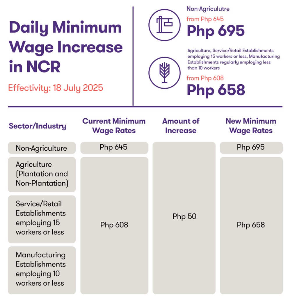 The increase is set to take effect on 18 July 2025, immediately after the anniversary date of the last minimum wage increase in NCR which took effect on 17 July 2024.