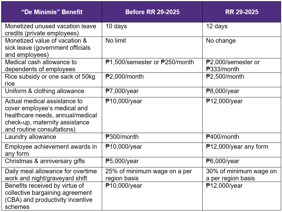 The increase of the ceiling of non-taxable de minimis benefit in effect amends RR No. 2-98, as last amended by RR No. 4-2025 as follows: